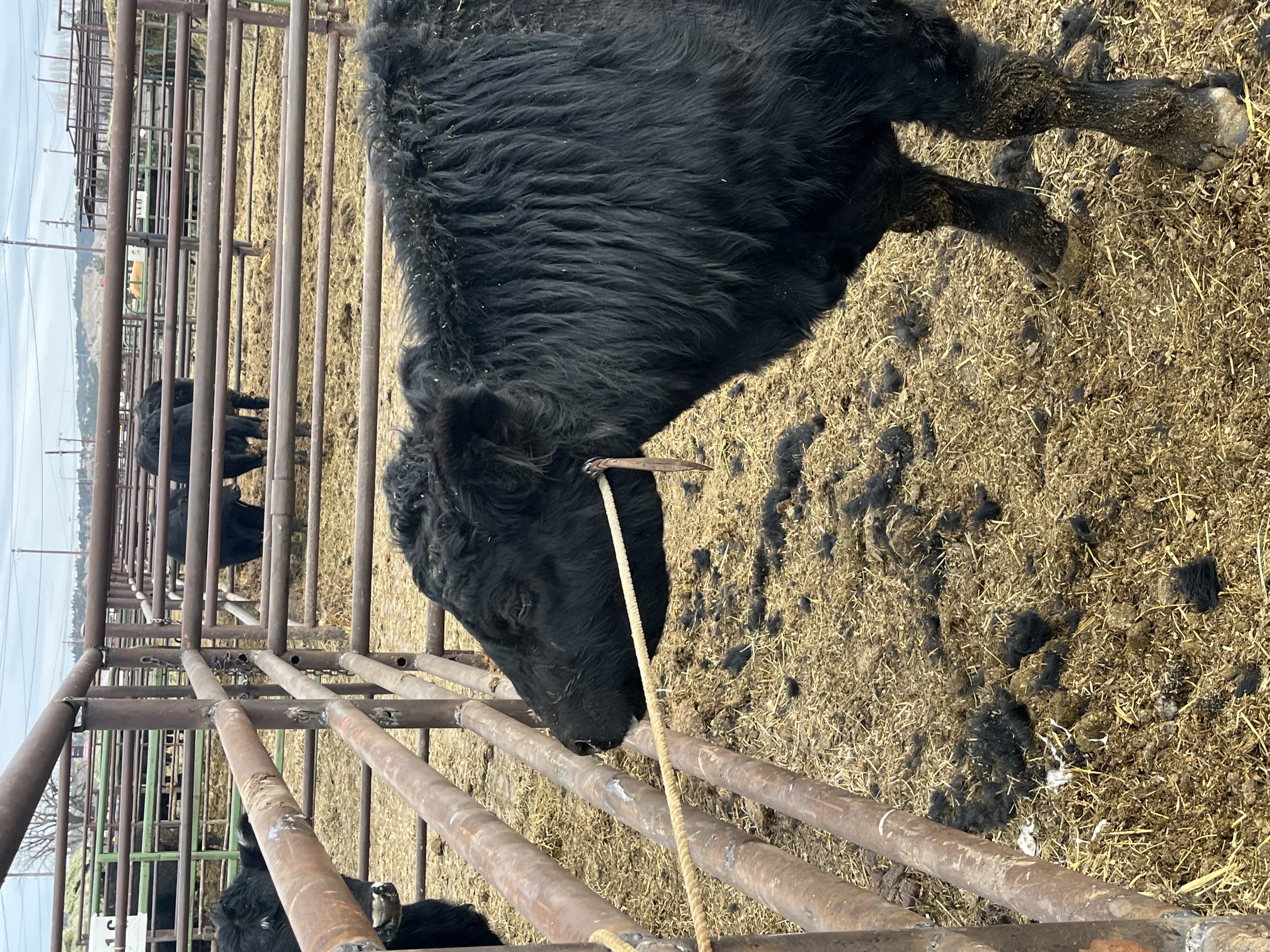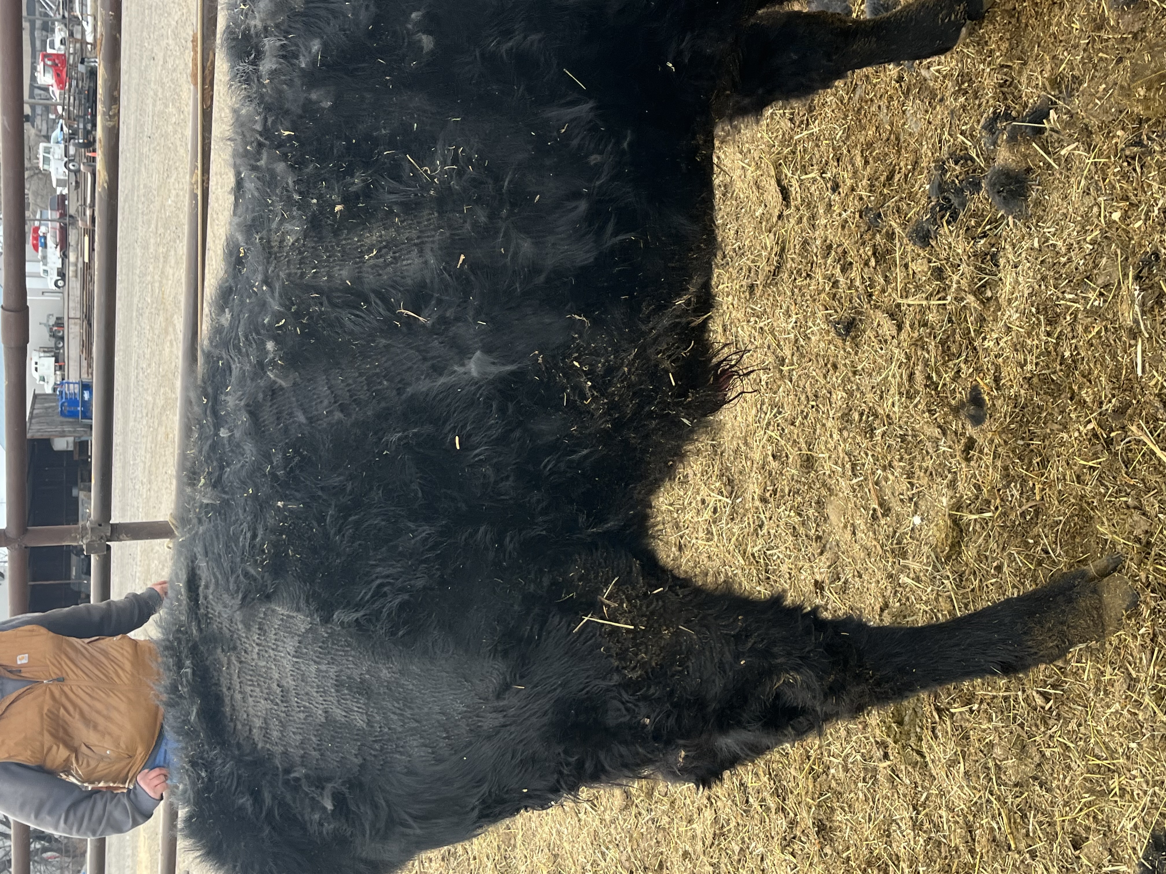 • One (1) Black bull, 2-4 years old, has blotched brand on right rib.